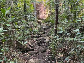 A majority of the terrain on Hinchinbrook Island is rough and rocky, particularly on high ground, in gorges, creek and river beds. The ground is often distorted with embedded or loose rock depending on the trail variations. There may be loose roots in the rainforest sections.